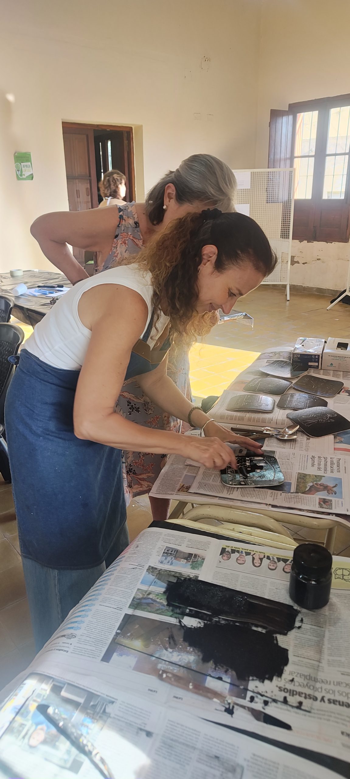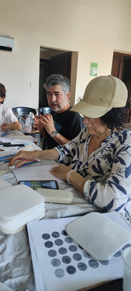 La siguiente etapa consistió en dotar de una imagen a los patrimonios seleccionados. Se desarrolló un taller artístico, a cargo de accionALO, en el cual los y las participantes elegían un espacio a representar en líneas simples gracias a la técnica del grabado. Nacieron de esta manera diferentes representaciones llamadas pictogramas.