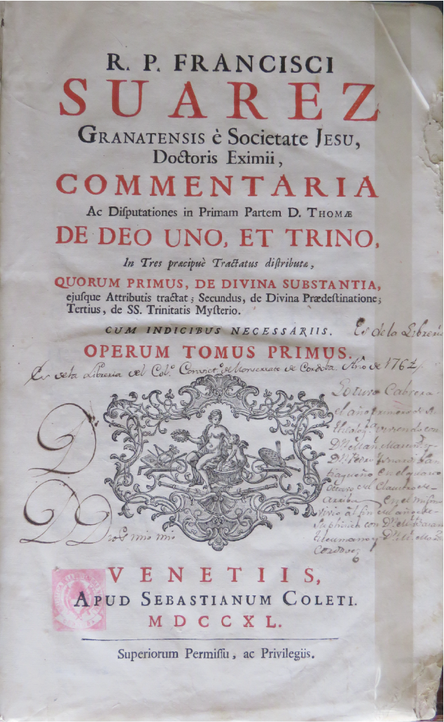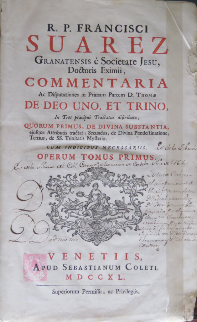 Sala 3 | «Tractatus de legibus, ac Deo legislatore, in Decem Libros distributus, utriusque Fori hominibus non minus utilis, quam necessarius» Autor:  Francisco Suarez  Lugar y fecha de impresión: Londres, 1679